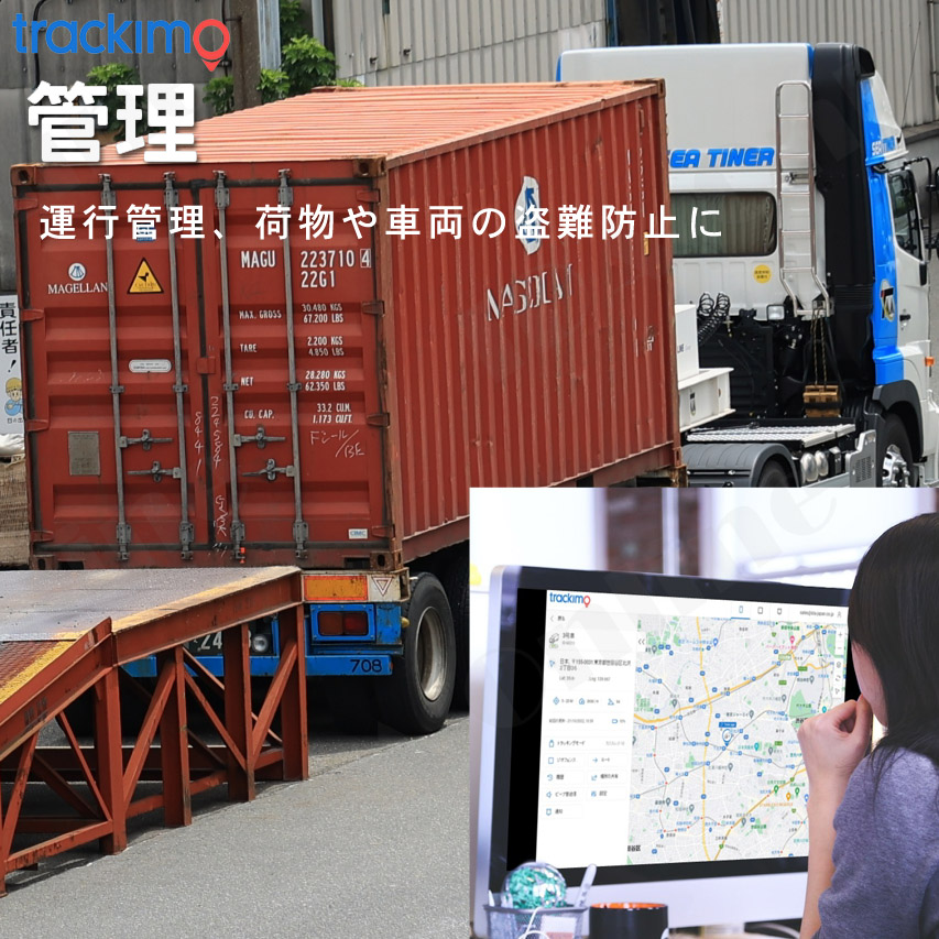 ■車、バイク、貨物の追跡に トラッキモプロはあなたに代わり、設置した自動車やバイク、貨物コンテナや大型車両などの様々な乗り物の現在の位置をリアルタイムでパソコンまたはスマートフォンの管理画面から確認することが可能です。