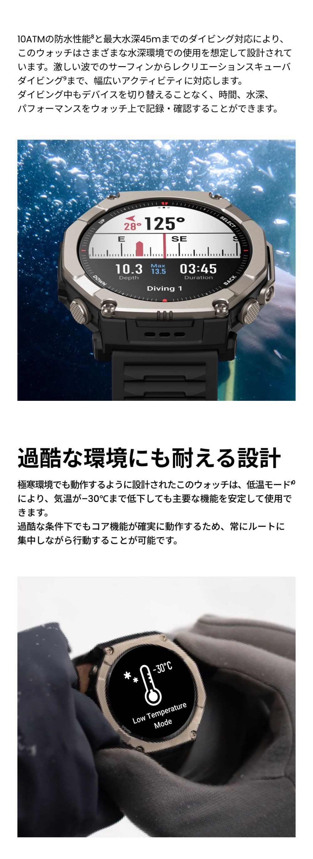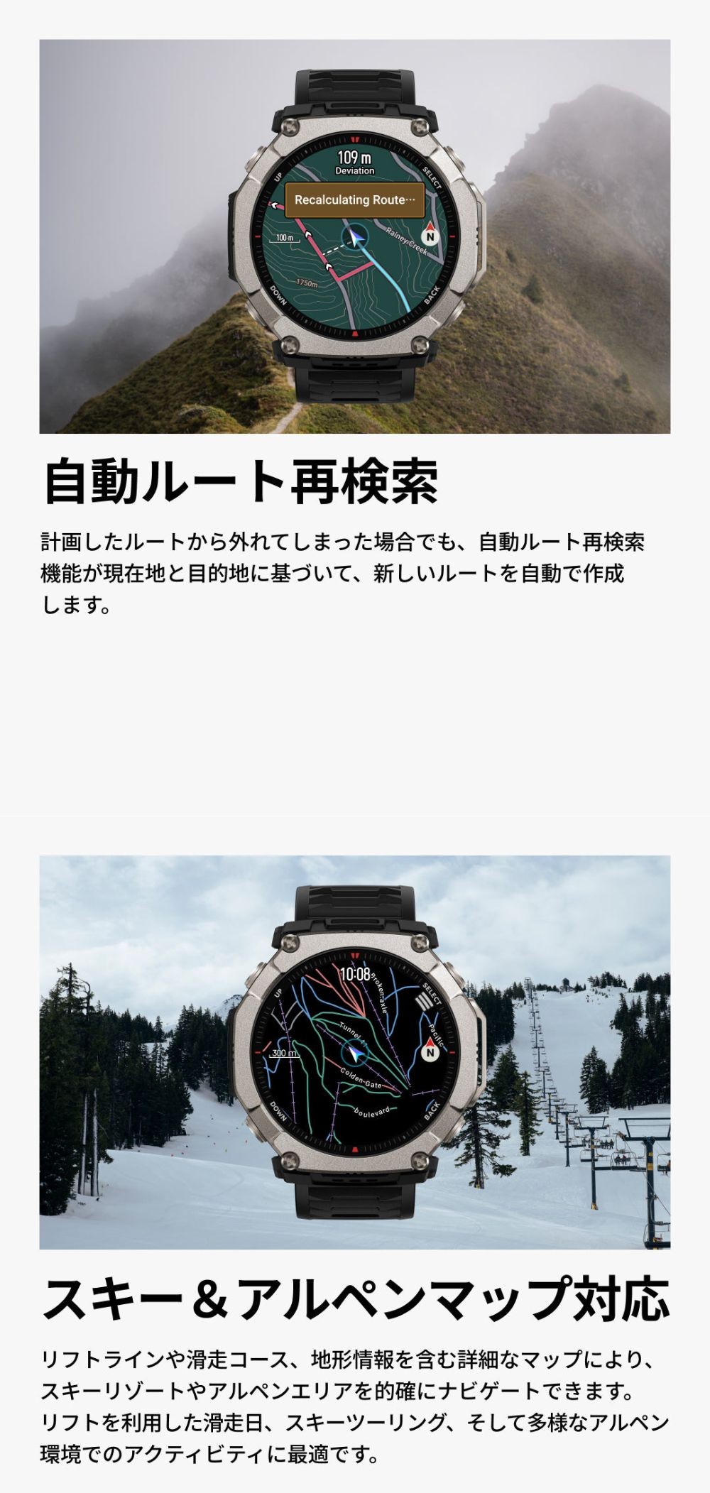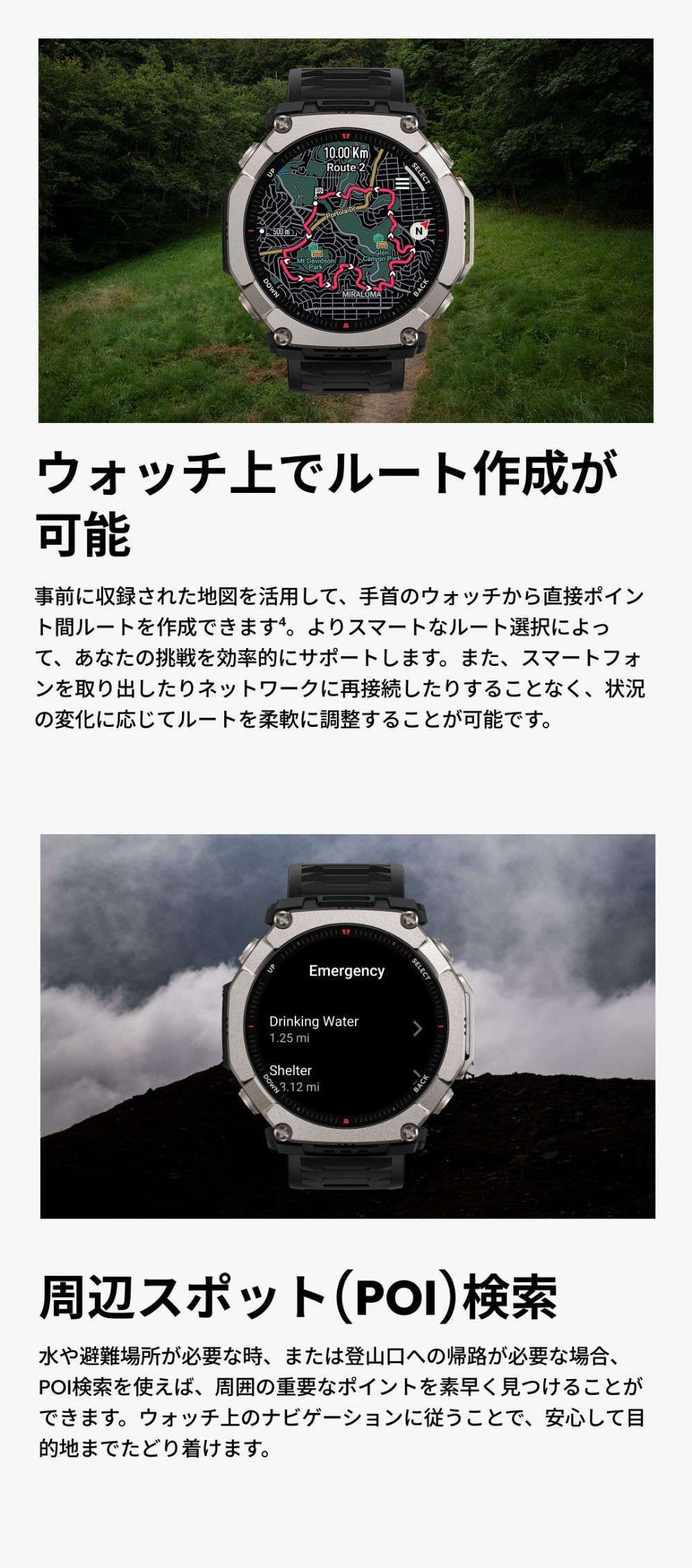 ![]() ![]() ■直径51mmの超大画面AMOLEDディスプレイ&サファイアガラス ■最上級グレード5のチタン合金製 ■画面輝度も最大の3,000nitで視認性が抜群 ■最大30日間持続のバッテリー性能 ■64GBのストレージ容量で、事前にオフラインベースマップがダウンロード済 ■白・緑色LED搭載で視野角拡大 ■-30℃の低温動作モード対応、10 ATM防水+ダイビング対応、MIL規格認証取得 ■6衛星測位システムGPS搭載、方向転換を示すオフラインマップ機能、ベース/等高線/スキー場MAP対応 ■スピーカー&マイクを内蔵し、音声コントロールとBluetooth通話に対応 ![]() ![]() ![]() ![]() ![]() ![]() ![]() ![]() ![]() ![]() ![]() ![]() ![]() ![]() ![]() |