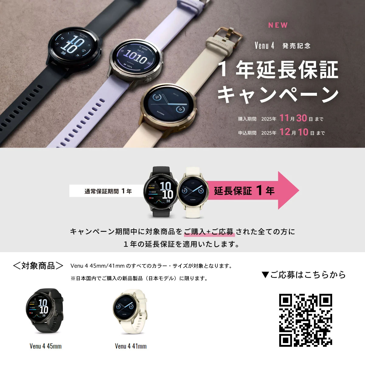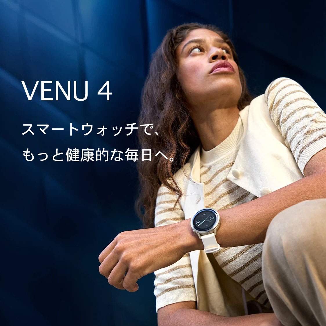 ![]() Venu(ヴェニュー) 4は高度な健康・フィットネス機能を搭載したGPSスマートウォッチです。カラダの状態をより深く理解し、スポーツなどのアクティビティをトラッキングすることで、健康でアクティブなライフスタイルをサポートします。