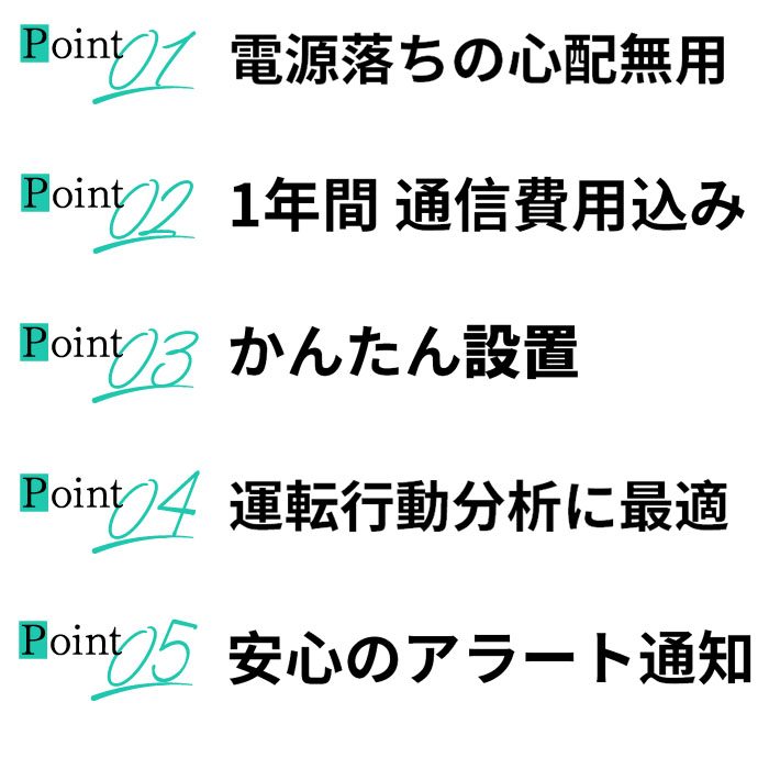<注意事項> ・製品の機能、仕様、外観等は予告なく変更される場合がございます。 ・ご利用について:同封のスタートアップガイド、またはこちらをご参照ください。 ・アプリケーション:iOS/Android 対応可 ・1年間の通信期間の利用停止後、1年経過後は、更新が出来なくなります。1年以内であれば、利用再開が可能です。 ・更新費用:TNK-02A シガーソケットタイプ 「半年間更新 8,400円(税込)、1年間更新 16,800円(税込)」 商品の使い方や、登録・更新・ご解約については同封の用紙、またはこちらをご参照ください。 <製品仕様> ●GNSS ・測位システム:GPS+GLONASS+BDS+AGPS ・測位精度:<2.5m CEP ・追尾感度:-165dBm ・捕捉感度:-148dBm ・TTFF:平均ホットスタート:1秒、平均コールドスタート:32秒 ●通信 ・通信ネットワーク:4G Cat 1, LTE M1 & NB2 ・周波数:<TNK-02A> TE-FDD (Cat M1/NB2): B1/B3/B8/B18/B19/B26 ●電源 ・バッテリー:50mAh/3.7V ・入力電圧:9-36VDC ・電力消費:待機:15mA、動作中:120mA ●インターフェース ・LED表示:電源インジケータ(赤)SOSアラート(青) ・SIM:Nano-SIM ・USB:USB-A (急速充電用)、Type-C (急速充電、更新、デバッグ用) ・GNSSアンテナ:内蔵 ・Bluetoothアンテナ:内蔵 ・コネクター:シガーライターソケット ●サイズ:70.0mm × 52.0mm× 82.5mm ●重量:60g ●動作温度:-20 ~ +70℃ ●動作湿度:5% ~ 95% 結露なし ●センサー:加速度計 ●シナリオ:急加速アラート、急ブレーキアラート、急ハンドル(左右)アラート、衝突アラート、外部電力不足アラート、振動アラート、プラグ抜けアラート、取り付けアラート、スピード違反アラート、疲労運転アラート、ジオフェンス、SOSアラート、ジオフェンス、ジオフェンス(入退室)、長時間停車アラート、長時間アイドリング、リマインダーでいっぱい、夜間運転注意喚起、メンテナンスアラート ●特徴 ・認証:技術基準適合認証、CE、FCC、PTCRB ・設定サポート:SMS, TTSプラットフォーム, PC Tools ・ファームウェア・アップデート:OTA