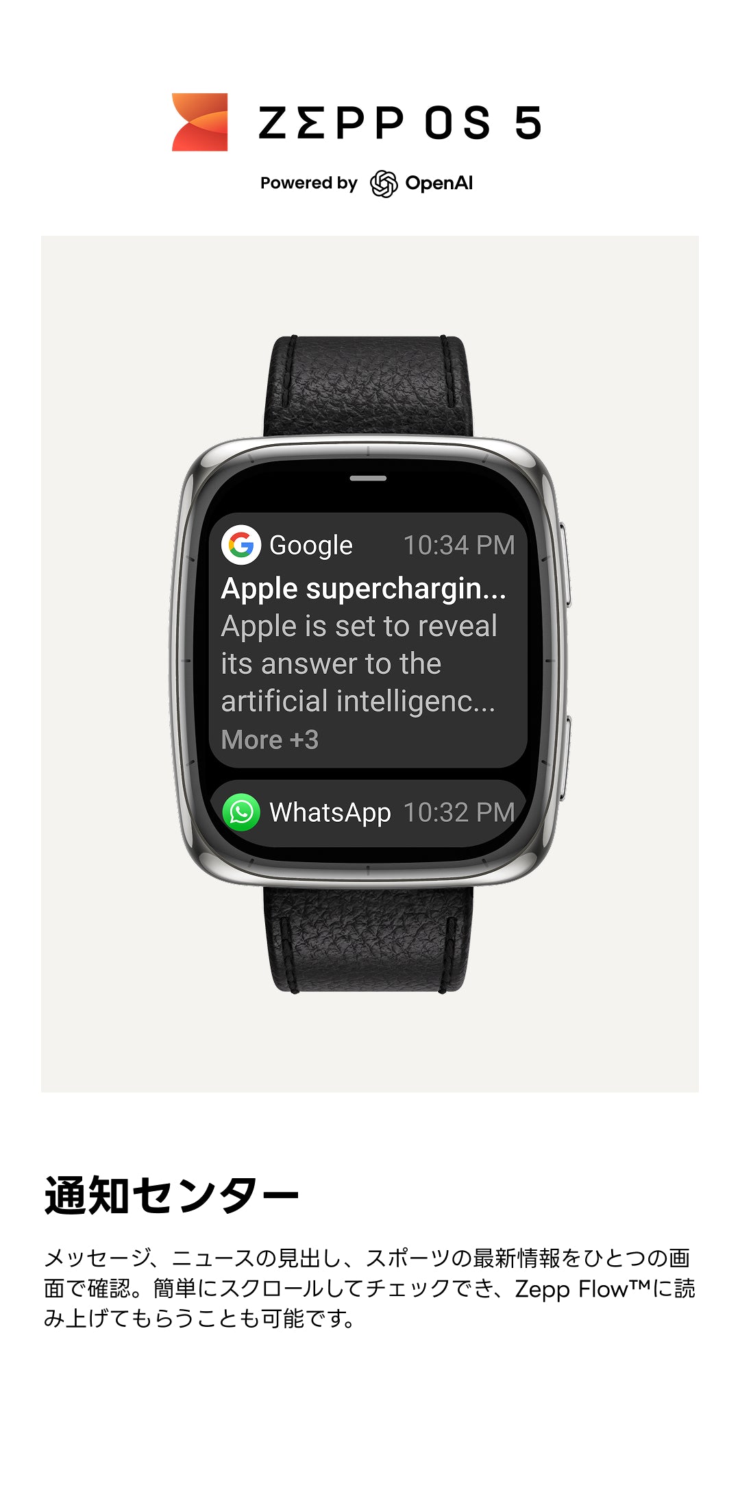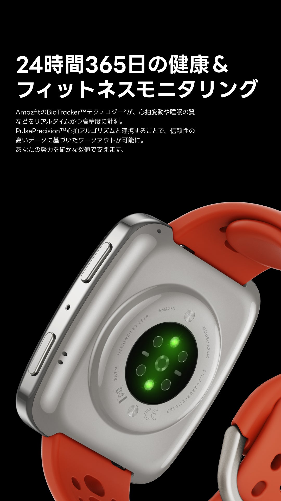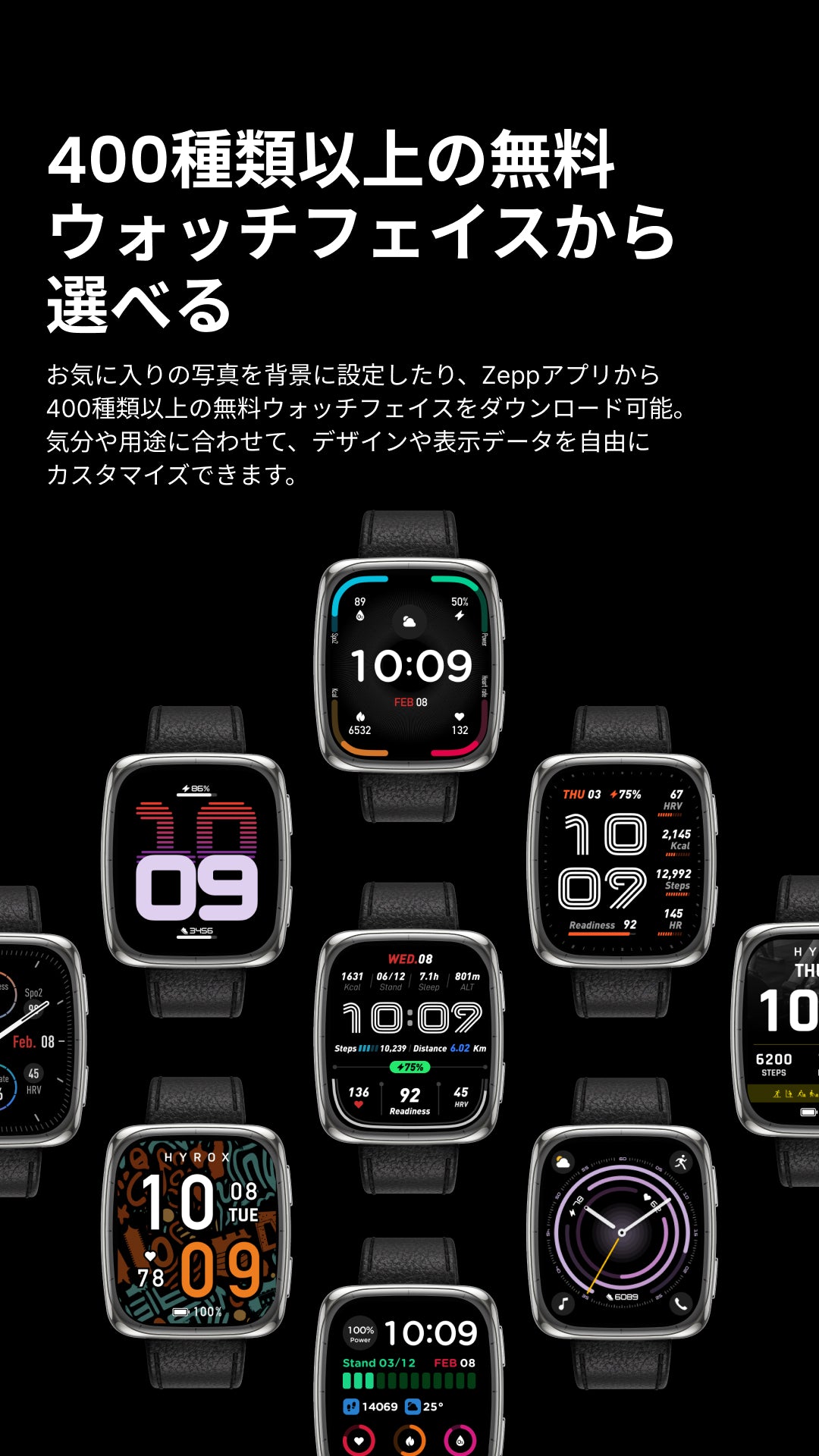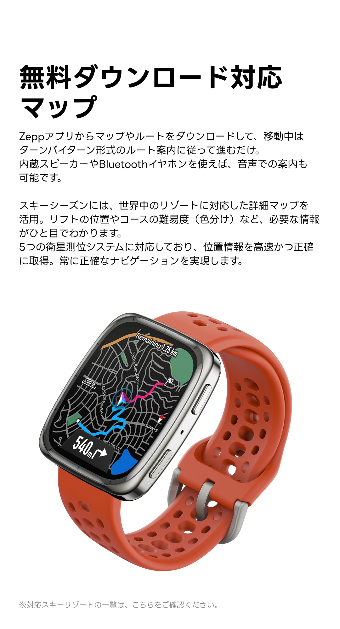 <バッテリー持続時間について> ●標準的な使用でのバッテリー駆動時間:最大10日間 ●省電力モードのバッテリー駆動時間:最大19日間 ●ハードな使用でのバッテリー駆動時間:最大5日間 ●AODモードでのバッテリー駆動時間:最大7日間 ●GPS連続駆動時間:最大21時間 ※バッテリー持続時間は設定、操作条件、およびその他の要因によって異なる場合があります。実際の結果は、実験室のデータと異なる場合があります。 <仕様> ◆デザイン カラー:ブラックレザー サイズ:約43.32×36.9×9.0(心拍ベース除く)(心拍ベース含むと約11mm) 重量:約42g(バンドの重さを含む)/約31.4g(バンド除く) ボディ素材:フレーム:ステンレススチール、ケース:繊維強化樹脂 ボタン:2 防水グレード:有/5ATM(ISO 22810:2010規格に準ずる・レポート番号:SHES250300481871) マイク:有 スピーカー:有 ◆ディスプレイ ディスプレイ素材:HD AMOLED ディスプレイサイズ:1.75インチ 解像度:390×450 PPI:341 タッチスクリーン:サファイアガラス ◆バンド バンド素材:レザー バンド長さ:レザー:150-210 バンド幅:20mm バンド仕様:クラシックピンバックル ◆バッテリー バッテリー容量:260mAh 充電方法:マグネット式充電 充電時間:約2時間 ◆スポーツ機能 スポーツモード:160+ スマート認識:8つのスポーツ スマート認識対応の筋力トレーニング:有 高度なランニングサポート:仮想ペーサー ワークアウトステータス:PeakBeats(VO2Max、完全回復時間、トレーニングの負荷・効果など) インターバルトレーニング:有 フトレーニングテンプレート:有 外部デバイスへの接続:有 Zeppコーチ〓:有 運動データのアナウンス:有 ◆システム アプリ:Zepp アプリ※タブレット未対応 対応デバイス:Android7.0以上、iOS15.0以上 接続:Bluetooth 5.2 BLE 搭載OS:Zepp OS 5 ミニアプリ:対応 ※一部日本語非対応 スリープモード:有 Alexa(日本語対応):無 オフライン音声アシスタント:有(日本語非対応) 音声通話:有(受発信対応) アプリ通知:有 ウォッチフェイス:400+ 表面温度測定:有 ◆ヘルス機能 レディネス:有 体組成測定:無 24時間モニタリング:心拍数/血中酸素レベル/ストレスレベル 手動測定:心拍数/血中酸素レベル/ストレスレベル/ワンタップ測定(4つの健康指標) 睡眠の質のモニタリング:睡眠段階(REMを含む) 昼寝の時間/睡眠スケジュール/睡眠時の呼吸の質/睡眠スコア 健康評価システム:PAI 呼吸エクササイズ:有(3種類) 生理周期トラッキング:有 健康リマインダー:心拍数の異常/低血中酸素/高ストレスレベル/呼吸エクササイズ/座り過ぎのリマインダー ◆センサー 健康:バイオトラッカーPPG 運動:加速度センサー、ジャイロスコープ、温度センサー、環境光センサー、地磁気センサー、気圧高度計 測位システム:円偏波GPSアンテナ 5衛星測位(GPS、GLONASS、Galileo、BDS、QZSS) ※屋内位置サービスはサポートされていません。 モーター:ローターモーター ◆その他 SMS返信※Androidのみ:有 LINE返信※Androidのみ:有 セット内容:時計本体(純正バンド含む)、専用充電ベース(ケーブルなし)、取扱説明書 技適番号:020-250080 |